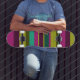 Um skate com uma design irregulares atraente em cores harmoniosas.