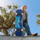 skate com um design com a bandeira de Orem, Utah. Uma bandeira azul, branca e amarela com picos de montanha e o sol no centro