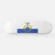 skate com uma design com a bandeira de Orlando, Flórida. Um design de bandeira azul e branca pela Cidade de Orlando e Tim Eggert. Fonte: https://www.orlando.gov/Our-Government/News-and-Information/City-Official-Assets