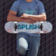 Uma vista aérea de uma praia rosa com água turquesa nas Bermudas. Esta fotografia com um Splish alegre e divertido - A mensagem de abertura é o pano de fundo perfeito para o seu skate. Adicione seu nome a ele e torne-o exclusivamente seu. Você pode alterar as fontes, as cores da fonte e a mensagem.