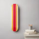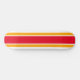 Este design desportivo divertido apresenta faixas flutuantes amarelas ouros destacando uma faixa vibrante de corrida em centro vermelho brilhante contra um fundo branco nítido.