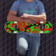 Um design abstrato excitante e divertido feito de bolhas circulares como formas em vermelho e verde vibrantes contrastando em um fundo preto. Produzido a partir de um vetor original e de saída a 300 dpi para garantir a melhor qualidade de impressão.