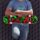 Um design abstrato excitante e divertido feito de bolhas circulares como formas em vermelho e verde vibrantes contrastantes, com preto. Produzido a partir de um vetor original e de saída a 300 dpi para garantir a melhor qualidade de impressão.