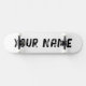 Tampa de skate com um design branco elegante e espaço para personalizar o nome. Perfeito para skate de rua, truques ou como um presente estiloso e personalizado para entusiastas de skate.
