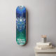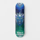 Skate da marca dizzyd, com obra de arte gráfica de uma cabeça de robô azul metálico com correntes elétricas subindo e descendo dela. O texto personalizado, na parte inferior da prancha, está pronto para ser personalizado para ler o que você quiser.