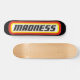 skate preto com o logotipo vermelho e amarelo Madness, semelhante ao logotipo Matchbox. Porque jogar pode ser mais do que apenas divertido...