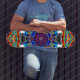 Skate Caleidoscópio Psicodélico Azul Vermelho e Verde