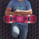 Skate Caleidoscópio Psicodélico Flor Rosa Vermelho e Ver