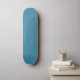Blue textured fabric surface with a vertical line pattern, creating a subtle and calming effect, suggesting a soft and natural feel.