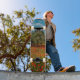 Skate campo com flores e árvores