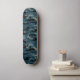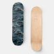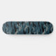 Este skate de camo apresenta um padrão de camuflagem em azul, preto e cinza.
