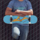 Skate Cartoon voador de pterodátilo, cor de laranja giro