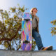 Um desenho abstrato dinâmico e colorido que apresenta uma mistura harmoniosa de azuis vívidos, amarelos, pinças e púrpura. A peça capta um fluxo energético de pinceladas como tinta pingando, evocando uma sensação de movimento e de brincadeira. Perfeito para aqueles que amam cheio ousado e expressivo de alegria e cor.