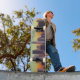 Esta plataforma do skate é imprimida com uma ilustração colorida do vetor que caracteriza uma skyline lindo no por do sol enchido com os arranha-céus e as palmeiras de Los Angeles do centro, Califórnia. Você pode totalmente substituir o texto com seus próprios e transformar esta plataforma em um presente original para alguém especial.