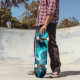 Este design de skate de impressionante apresenta uma mistura inspiradora de natureza e arte. Um céu azul vibrante serve como fundo para montanhas majestosas, com as Luzes do Norte adicionando um toque de magia à cena. O uso de linhas ousadas e cores brilhantes cria um contraste cativante que dá vida ao design. Quer esteja a ser atravessado pelas ruas ou exposto numa parede, este pavimento tem a certeza de virar cabeças e despertar imaginação.