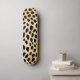 Esta design apresenta um padrão de impressão leopardo sobre um fundo laranja claro. O padrão é composto por manchas pretas que variam de tamanho e forma, criando um contraste com a cor laranja. Esta design é perfeita para quem ama impressões animais e quer