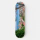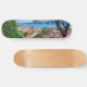 Vista da pequena cidade de Omis rodeada de montanhas, rio Cetina e mar, Makarska Riviera, Croácia. Vista do pinheiro, centro da cidade com telhados vermelhos e azul.