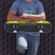 Este design sólido de duas cores oferece uma base pintada com cinza escura acompanhada por uma borda amarela brilhante. Você pode personalizar o nome no conselho.