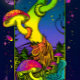 um design de skate com cogumelos, trippy color e um estilo de arte psicodélico vetorial em um fundo branco. o design é vibrante com neon color e é ultra-detalhado, dando a ele uma aparência hiperrealista