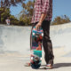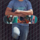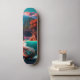A skull head has been completely colored in an abstract style to bring you into the world of creativity and surreal design, in the style of photo-realistic landscapes, tropical landscapes, futuristic realism, pixelated realism, light crimson and sky-blue, surrealistic dreamscapes