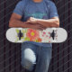 Um skate com uma bela mistura de flores de verão. Arte original por W.B.