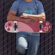 Retro legal dos anos 60 e 70, design de skate personalizado floral vintage com onda monocromática simples magenta a rosa. Com um simples padrão de margarida dando uma legal vibração. Arte original da artista Catherine Sweetman