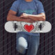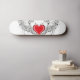 Coração vermelho pintado artificialmente com cinza de asas de anjo, decorado com contorno liso preto.