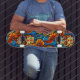 Experimente a atração cativante de um crânio de açúcar arrojado e vibrante embelezado por belas flores azuis, amarelas e laranja.