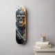 Libere o poder desta impressionante obra de arte, apresentando um crânio formidável com olhos brilhantes, pronto para a batalha contra as forças da perdição. Vestida com couro preto elegante e armada com uma arma de fogo, a figura exala intensidade e resiliência. Chamas ardentes, fumaça e cinzas giram ao fundo dramático, amplificando o sentido de ação e perigo. Perfeita para colecionadores que apreciam visuais ousados e dinâmicos e temas sombrios e atmosféricos, esta peça certamente fará uma declaração poderosa em qualquer espaço.