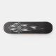 A cruz gótico flamejante com crânios é ajustada em um fundo preto e feita um skate mau.