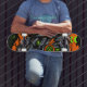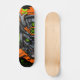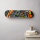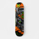 A highly detailed, vertical vector illustration of a futuristic Oni mask or Samurai helmet in a Cyberpunk style. The mask is predominantly colored in dark gray and black, featuring complex mechanical details like pipes, hoses, and metallic plating. Key accent colors are vivid neon orange and electric lime green, which highlight the glowing eyes and various ports and indicators. The background is a strong, jagged pattern of orange and black, and the bottom features digital text reading "LOADING... 67%" and "//DATA CORRUPTED," reinforcing the Sci-Fi and digital art theme.