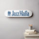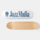 Skate com logotipo e texto da máfia do jazz