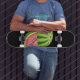 Plataforma do skate com a melancia nela.