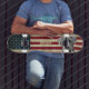O Cachorro Personalizado da Família é sobre se divertir, e há algo para todos na nossa área de skate. Um skate fabuloso garantiu que levanta um sorriso! . Mostre seu orgulho americano ou dê um presente especial com esta bandeira americana e seu adorável skate de estimação em um angustiado design de grunge vestido em madeira. Este design de skate de bandeira americana com estrelas e listras em vermelho branco e azul. Divirta-se com a sua mensagem pessoal... patinando nas ruas e no skate park, ou cruzando.