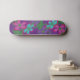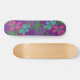 Folhas verdes com flores coloridas sobre fundo roxo fazem um skate giro e doce!