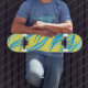 Essa qualidade feita no skate é mostrada em uma cor sólida de amarelo com um impressão de ondas azuis. Comprar como está ou personalize este item de acordo com o seu gosto.