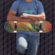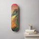 Esta é uma pintura acrílica de um dragão de respiração do fogo no skate que eu pintei muito frouxamente. O dragão está respirando a chama e está destruindo o espaço em torno dele.
