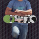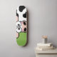 Pão de skate de vaca. Design apresenta uma vergonha de vaca branca e preta sobre um fundo verde. Perfeito para patinadores de meninas. Copyright © Lisa Marie Robinson Todos os direitos reservados.