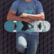 Dirigindo através das profundezas do oceano, o predador ápice move-se com precisão rápida. Seja o predador ápice das ruas neste conselho de design elegante com um dente de tubarão e um gráfico de tubarão em um belo fundo do mar profundo.