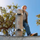 Pretty desert landscape color palette includes soft baby blue heavenly sky, pillowy soft creamy clouds and sandy tan brown desert land.