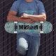 Este skate vai fazer você sentir que está cavalgando as ondas com a imagem de água de abstrato rippling repetida nele. O texto está em uma fonte legal e jovem que irá ajustado bem no skate. Personalize-o facilmente com o seu próprio nome.