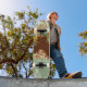 Design de skate em verde e marrom com círculos e elementos gráficos.