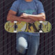 Este design original da plataforma do skate da arte abstracta é uma seção de minha pintura original da arte abstracta. O amarelo espirra e os flashes brancos e verdes vermelhos estão realmente para fora contra as formas pretas. este é um design moderno original e inteiramente original que possa somente ser considerado neste conselho customizável legal.