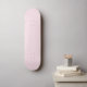 Diagonal white and pink stripes create a soft, playful pattern. The alternating colors give a sense of simplicity and lightheartedness.