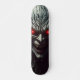 Um demônio com olhos vermelhos queimando e um sorriso inquietante.