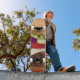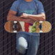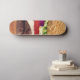 Plataforma do skate com o gráfico do cheeseburger nele.