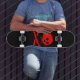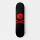 Crânio vermelho do pirata em um fundo preto. Skate feito sob encomenda muito legal e original.