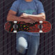 o skate do ninja, é um conselho impressionante com cores do fogo, grande presente para patinadores, o ninja está guardarando uma espada no modo do ataque. Eu fiz este design do ninja usando o painterx e o photoshop,
