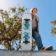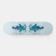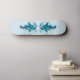 um design decorativo da tinta e do gouache dos meios mistos de duas tubarões ou orcas tribais do tatuagem de turquesa em um skate