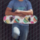 Um skate do teste padrão do cupcake perfeito para aqueles que amam ao skate mas igualmente aqueles que amam os cupcakes, tão perfeitos para talvez um patinador fêmea ou apenas um gajo que goste de algo vista original e fresca! Os amantes e os skateres do cupcake unem-se!